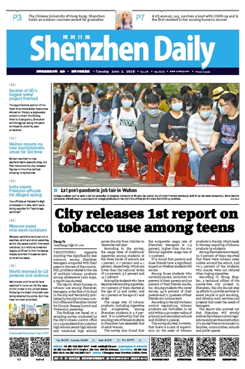 | City releases 1st report on tobacco use among teens | | TRADITIONAL cigarette smoking was significantly less common among Shenzhen teenagers compared with their peers in the rest of the country. Still, problems related to the use of multiple tobacco products among adolescents loom large, a report has showed. ... | | |