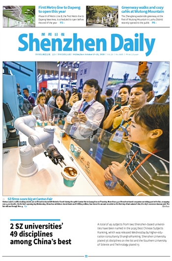 2 SZ universities’49 disciplines among China’s best | A total of 49 subjects from two Shenzhen-based universities have been named in the 2025 Best Chinese Subjects Ranking, which was released Wednesday by higher‑education consultancy ShanghaiRanking. Shenzhen University placed 36 disciplines on the list and the Southern University of Science and Technology placed 13 ... | | |