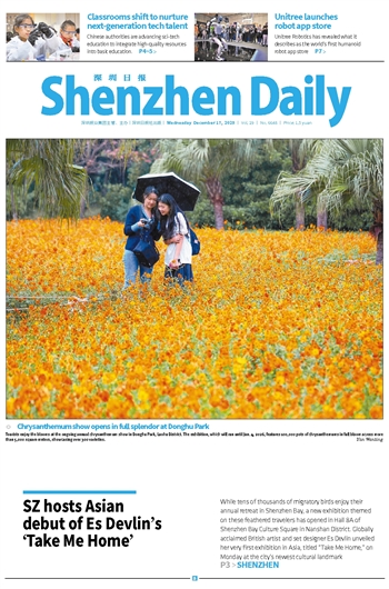 | SZ hosts Asian debut of Es Devlin’s ‘Take Me Home’ | | While tens of thousands of migratory birds enjoy their annual retreat in Shenzhen Bay, a new exhibition themed on these feathered travelers has opened in Hall 8A of Shenzhen Bay Culture Square in Nanshan District. Globally acclaimed British artist and set designer Es Devlin unveiled her very first exhibition in Asia, titled “Take Me Home,” on Monday at the city’s newest cultural landmark ... | | |