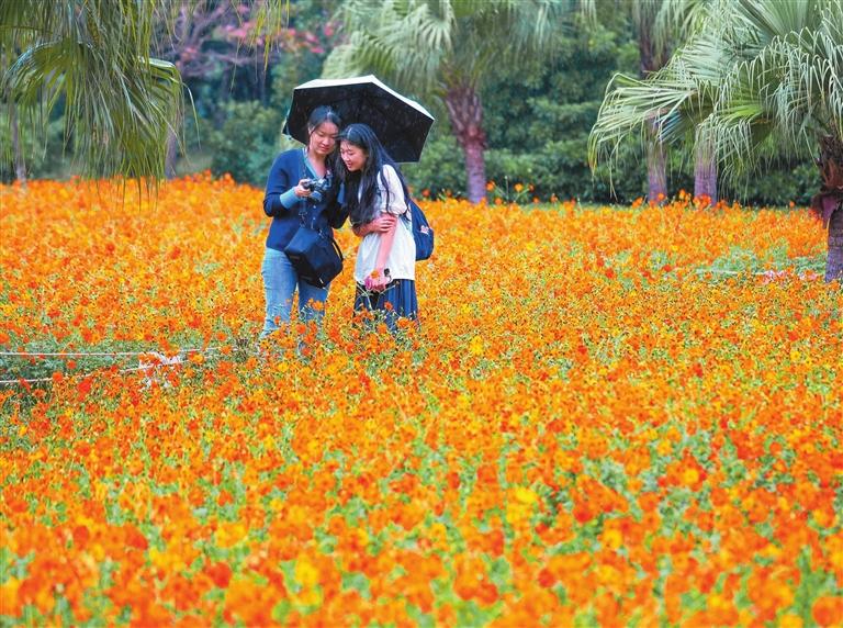 | | Tourists enjoy the blooms at the ongoing annual chrysanthemum show in Donghu Park, Luohu District. The exhibition, which will run until Jan. 4, 2026, features 100,000 pots of chrysanthemums in full bloom across more than 5,000 square meters, showcasing over 300 varieties. |