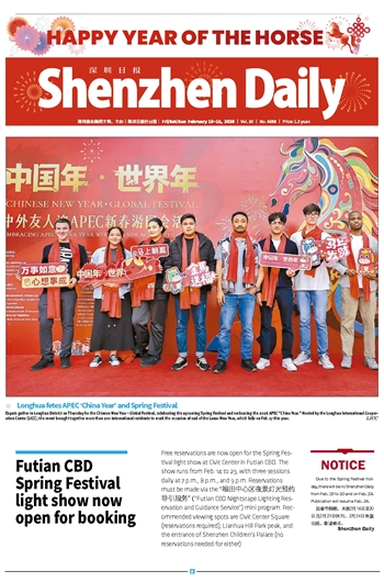 | NOTICE | | Due to the Spring Festival holiday, there will be no Shenzhen Daily from Feb. 16 to 20 and on Feb. 23. Publication will resume Feb. 24. ... | | |