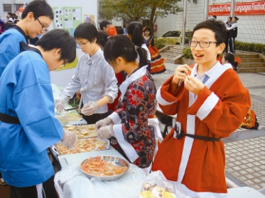 Students at Shenzhen Foreign Languages School learn how to make Western-style cookies at the campus on December 24 for the school’s foreign languages festival.