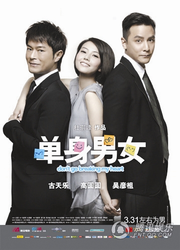 “Don’t Go Breaking My Heart,” which pairs Chinese mainland actress Gao Yuanyuan with Hong Kong heartthrob* Louis Koo and Chinese-American Daniel Wu, is part of To’s recent push into the mainland market. The veteran director is best known for his stylish action thrillers but is now hoping to reach a broader audience with light comedies.