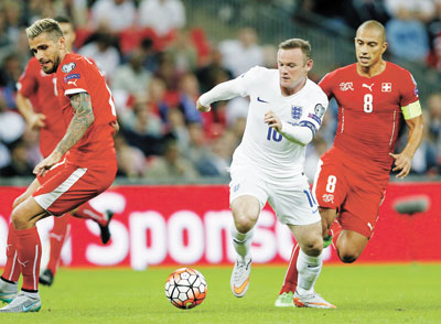 With England having secured a berth in France with a 6-0 win at San Marino on Saturday, the focus at Wembley was mainly on Rooney’s quest to break Charlton’s record. England struggled to create chances, though, and the Manchester United striker sidefooted a shot wide in the 17th minute and then headed straight at goalkeeper Yann Sommer in the 51st.