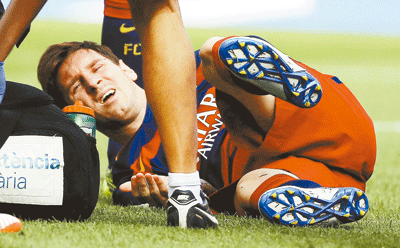 Barca had been humiliated 4-1 at Celta Vigo in midweek and hopes of a trouble-free afternoon were ended after just 10 minutes when Messi injured his left knee in a clash with Pedro Bigas.