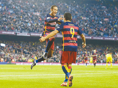 At Camp Nou, Neymar and Luis Suarez once again shone in Lionel Messi’s absence as Barca overcame some stiff first-half resistance from Villarreal to record a fourth consecutive league win.