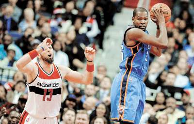 After Durant left at halftime because of his injury, Thunder teammate Russell Westbrook took over, compiling a triple-double with 22 points, 11 assists and 11 rebounds to lead Oklahoma City to a 125-101 victory over the struggling Wizards.