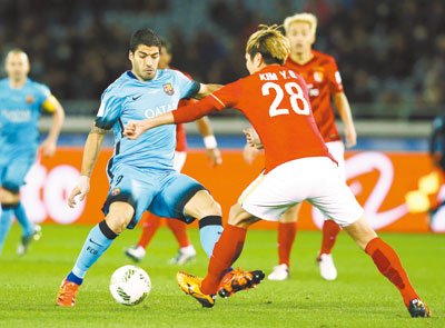 Guangzhou rarely showed signs of a fightback and Suarez blasted home a penalty to complete his treble — the first in the tournament’s history — on 67 minutes and secure the victory for Barca.