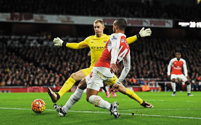 Mesut Ozil brought the ball into the final third and played a low pass into Walcott, who shifted onto his right foot and whipped a shot low into the far corner, beyond the reach of outstretched City goalkeeper Joe Hart.