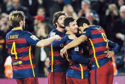 Barca celebrated its fifth trophy of 2015 before kick-off after adding the Club World Cup to its haul last time out with Messi captaining the side in the absence of Andres Iniesta.