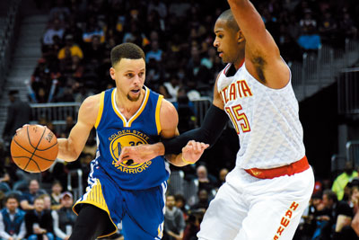 Perhaps the best sequence came when Curry swished a towering 3-pointer from the corner, the ball seeming to disappear into the rafters of Philips Arena at the height of its arc. Then, after posing briefly in front of the Golden State bench, he hustled back to the other end to draw an offensive foul on Teague, who looked befuddled by what he was seeing.