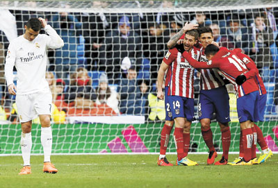Atletico had the chance to kill the game off 24 minutes from time when they cut through Real’s brittle defense once more, but Navas rushed from his goal to block Saul Niguez’s attempted chip.