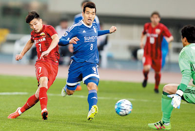 Suwon did reduce the deficit with 19 minutes remaining when captain Yeom Ki-hun split the defense with a superb pass that met the run of overlapping left-back Yang Sang-min and his low cross was converted from close range by second-half substitute Jang.