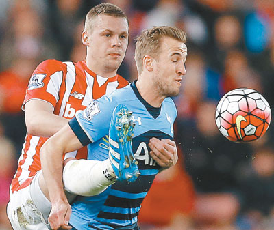 TOTTENHAM HOTSPUR took a large bite out of Leicester City’s Premier League lead with two goals apiece from Harry Kane and Dele Alli earning them a 4-0 victory at Stoke City on Monday.