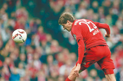 The hosts needed just half an hour to take the lead at Munich’s Allianz Arena when Mueller was left unmarked in the middle of the area to head home Xabi Alonso’s corner.