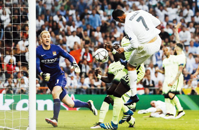 However, Madrid got the luck they needed to swing the tie in their favor with their next attack as Bale was played in on the right of the City box and his intended cross spooned up off Fernando and into the far corner to leave Hart helpless.