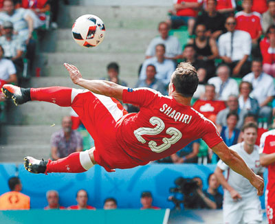 The abiding memory of the game though will be the 82nd minute equalizer for Switzerland by Xherdan Shaqiri, the goal of the tournament so far. Jumping with his back to the goal, Shaqiri sent a left-foot volley from the edge of the area onto the inside of the post and into the net.