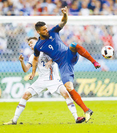 In the 12th minute, Blaise Matuidi beat Iceland’s back four with a well-shaped through ball, and Giroud smashed a bouncing ball along a slick surface and through the legs of Iceland keeper Hannes Halldorsson’s legs.