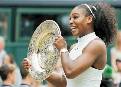 After coming up short in three consecutive majors, Williams tied Steffi Graf’s mark with a 7-5, 6-3 win over Angelique Kerber in Saturday’s Wimbledon final.