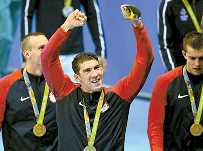 “It felt good to get, after my last 400 free relay of my career, this thing around my neck,” Phelps said, glancing down and touching his gold medal. “It feels good to get it back.”