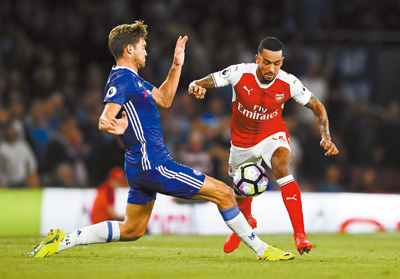 The Gunners were 1-0 up in the 11th minute when Alexis Sanchez robbed center-back Gary Cahill and chipped the ball over goalkeeper Thibaut Courtois.