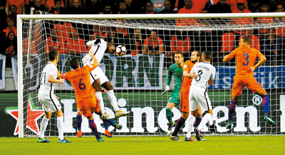 A SEARING first-half strike from Paul Pogba handed France a 1-0 win at rival the Netherlands as Belgium and Portugal clocked up 6-0 victories and Christian Benteke grabbed a slice of World Cup qualifying history.