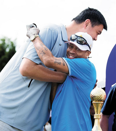 BASKETBALL Hall of Famers Yao Ming and Allen Iverson were in action alongside legends from the world of golf during the World Celebrity Pro-Am golf tournament in Haikou, Hanan Province, on Saturday.