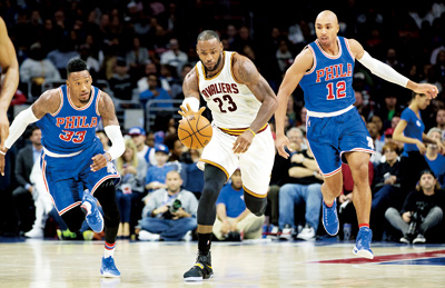 LEBRON JAMES scored 25 points, moving into 10th place on the NBA’s career list, and added 14 assists and eight rebounds as the unbeaten Cleveland Cavaliers held off the winless Philadelphia 76ers 102-101 Saturday night.