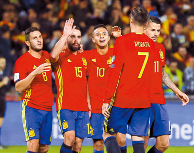 FORMER champions Spain and Italy eased to comfortable 4–0 wins over weak opponents in European qualifying for the 2018 World Cup on Saturday.