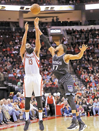 JAMES HARDEN matched the franchise record for career triple-doubles to lead the Houston Rockets to a dominating 132-98 victory over the shorthanded Sacramento Kings on Wednesday.