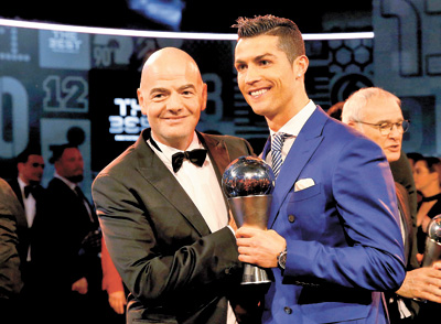 CAPPING what he called the best year of his career, Cristiano Ronaldo won his fourth FIFA best player award Monday.