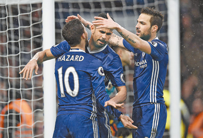 Fabregas hit the bar before Pedro’s curling effort restored the lead and Diego Costa netted the third from close range.
