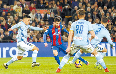 Besides two goals, Messi also contributed to setting up second-half strikes by Ivan Rakitic and Samuel Umtiti, dealing a stinging win to a good Celta side, which has beaten Barcelona and Real Madrid this season.