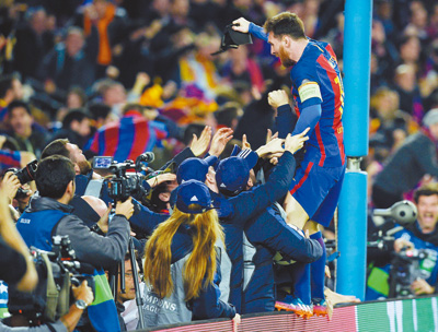 Messi made no mistake with the penalty to rifle home his 11th Champions League goal of the season.(SD-Agencies)