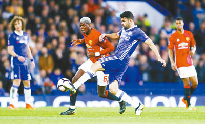 It was Hazard who was the first to test goalkeeper David De Gea after breaking away from Chris Smalling around the halfway and beating two more United players before his 16th-minute strike. From the resulting corner it took De Gea low at full stretch to keep out Cahill’s close-range effort.(SD-Agencies)