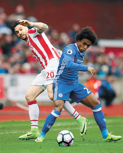 CHELSEA continued its surge towards regaining the English Premier League (EPL) title as a late Gary Cahill goal helped the side eke out a 2-1 win at Stoke City and move 13 points clear. The latest triumph for Antonio Conte’s unstoppable charges came after London rival Arsenal’s season continued to unravel with a third straight 3-1 away league defeat, this time at West Bromwich Albion. The Gunners’ fourth loss in five league games leaves them fifth and raised further questions about the future of under-pressure manager Arsene Wenger, who announced intriguingly afterwards: “I know what I will do. You will soon know.” Conte had been without the in-form Eden Hazard through injury for what always promised to be an awkward fixture for Chelsea at Stoke and, just as they had recently held Manchester City at home, the Potters again made life difficult. Willian put the leaders ahead after 13 minutes thanks to a blunder by Stoke goalkeeper Lee Grant but Jon Walters equalized with a penalty before halftime after being fouled by Cahill. The England defender made amends in the 87th minute with a deserved winner and, after Phil Bardsley had been sent off for Stoke in added time, Conte celebrated with his staff on the touchline as Chelsea moved on to 69 points, leaving all the pressure on their nearest pursuers who play the next day. Second-placed Tottenham Hotspur, which hosts Southampton, and third-placed Manchester City, which welcomes fourth-placed Liverpool to the Etihad Stadium, now both have to win to get back within 10 points of the leaders. Arsenal’s defeat came amid more protests from some of the more vociferous of the Gunners’ faithful about Wenger as the manager acknowledged that his side was in the middle of “a unique bad patch” in his two-decade managerial reign. After dismal defending saw West Brom’s Craig Dawson head home twice from corners in a convincing win for Tony Pulis’s men, Wenger told reporters: “We lose game after game at the moment and that for me is much more important than my future.” Yet as the debates about his prospects became ever louder — one airplane trailed a banner over the ground that declared “Wenger Out” while another trumpeted “In Arsene We Trust” — the Frenchman said he would clarify his future soon. His team, though, now look in serious jeopardy of not enjoying a 20th successive season of Champions League football in 2017-18 — and if Manchester United wins at Middlesbrough, Arsenal, currently fifth on 50 points, will drop to sixth, two points behind Jose Mourinho’s men. (SD-Agencies) |
