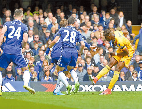 PREMIER League leaders Chelsea fell to a shock defeat as rejuvenated Crystal Palace struck twice in two minutes to win 2-1 at Stamford Bridge on Saturday. Chelsea led after five minutes as Cesc Fabregas swept a long pass out to Eden Hazard, who took on his defenders and then waited for support — which came from Fabregas, who raced into the area and finished off the Belgian’s cross. But Palace leveled within four minutes when Wilfried Zaha received the ball with his back to goal and turned away from his defenders before smashing home, and they were in front when Zaha’s fine run saw him set up Christian Benteke to scoop a brilliant finish over Thibaut Courtois. Fabregas and Hazard linked up again to set up Diego Costa but Wayne Hennessey produced a good save, and then the home side wanted a penalty when a Pedro shot struck Andros Townsend on the arm but saw their appeals rejected by referee Craig Pawson. Chelsea players were dominating possession but could have found themselves further adrift when James Tomkins headed narrowly over from a corner. Palace had another chance to make it 3-1 after the break when Zaha was put through but Courtois got a foot to his shot — and although Chelsea laid siege to the Palace goal they were unable to find a leveller despite more than seven minutes of added time, with Hennessey outstanding. Tottenham took advantage of Chelsea’s defeat to cut the gap to seven points with a clinical 2-0 win at Burnley. Chances were at a premium early on, with neither goalkeeper tested in a match in which the home side failed to fluster the Tottenham defense with a direct approach. The Londoners had the first good opportunity when Dele Alli fired over after Burnley goalkeeper Tom Heaton had saved, but not held, a shot from Christian Eriksen. But they broke through when Burnley failed to clear a cross and Eric Dier produced a cool finish after 66 minutes, and they were two clear 11 minutes later when Alli played the ball across and Son Heung-Min struck. Manchester United was held to a frustrating 0-0 draw by West Bromwich Albion at Old Trafford. After a slow start, the first chance fell to United’s Jesse Lingard, who chested down a deep cross but blasted his finish over the top. Just after the half-hour, Anthony Martial should have opened the scoring when he met a cross from Antonio Valencia only to head wide of the target. West Brom was not being put under much pressure and could have taken the lead through United old boy Darren Fletcher, who failed to get a proper connection on his effort after a ball from Craig Dawson had fallen to him. Marcus Rashford tried his luck from distance but visiting goalkeeper Ben Foster was equal to it, and the Baggies almost snatched a late winner when David De Gea scrambled a long-range Fletcher effort onto the bar. (SD-Agencies) |