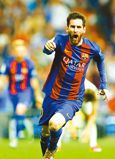 BARCELONA forward Lionel Messi put on a legendary display to guide the Catalan side to a dramatic 3-2 victory over Real Madrid in El Clasico on Sunday, leaving the Spanish league title race wide open. Messi netted his 500th career goal — his second of the night — with a low left-foot shot from inside the area after a cross by Jordi Alba two minutes into stoppage time. That goal left the two rivals level at the top on 75 points. Barcelona leads on the head-to-head tiebreaker but Madrid has six games left — one more than Barcelona. It was the second consecutive win by Barcelona at the Santiago Bernabeu Stadium, coming after a 4-0 rout last season that put Madrid in crisis and eventually led to the replacement of coach Rafa Benitez by Zinedine Zidane. This year’s victory could keep Madrid from winning the league title for the first time since 2012, and give the Catalan club its third straight La Liga trophy. “We can’t be happy,” Zidane said. “When you don’t put the game away, things like this can happen. We are disappointed because we didn’t deserve to lose.” It was another outstanding performance by Messi, who played part of the game with a bloodied mouth after colliding with Madrid left back Marcelo’s elbow. “He is the best player in history,” Barcelona coach Luis Enrique said of Messi. “He makes the difference.” Messi’s winner at the Bernabeu came after Sergi Roberto made a great run from Barcelona’s defense, leading to Alba’s low pass across the area as Messi came charging to one-touch the ball into the corner past the diving Keylor Navas. Messi’s first goal came after he got past Luka Modric and Dani Carvajal with a run inside the area after picking up a pass by Ivan Rakitic outside the box in the 33rd. Messi is the all-time leading scorer in the Clasico with 23 goals. He has scored 14 goals in his last 10 league matches, and is the competition’s leading scorer with 31 goals, seven more than teammate Luis Suarez. The Argentine playmaker has 47 goals with Barcelona in 46 games this season. It was a thrilling match at the Bernabeu, with the teams attacking from the start and giving both goalkeepers plenty of work. Casemiro had put the hosts ahead from close range after Sergio Ramos struck the post in the 28th. After equalizing five minutes later, Messi also helped set up Barcelona’s go-ahead goal by Rakitic in the 73rd, a powerful left-footed shot from outside the area. Ramos was sent off with a straight red card in the 77th after a foul on Messi to stop the playmaker from a one-on-one situation in a breakaway. Despite that, Madrid still found the strength to equalize in the 85th with substitute James Rodriguez. He redirected a cross by Marcelo only three minutes after he had entered the match to replace Karim Benzema. “We weren’t smart after we equalized,” Zidane said. “We thought we could score the third goal, but it’s dangerous to press up front when you are playing with 10 men.” (SD-Agencies) |