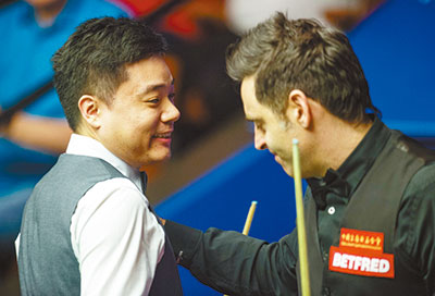 FIVE-TIME champion Ronnie O’Sullivan was knocked out of the World Championship, losing 13-10 to China’s Ding Junhui in the quarterfinals Wednesday. O’Sullivan’s tournament had been overshadowed by his claims that he had been bullied by snooker bosses. But he seemed unaffected by the controversy as he scored a tournament-high break of 146 to win three from four frames and get back to 11-9, having trailed 10-6. The pair then shared the next two frames and Ding held his nerve, scoring a classy 117 to earn a semifinal place against Mark Selby. The reigning champion scored 139 and 143 but it was no surprise the latter mark was beaten by O’Sullivan in a match that featured five centuries and 18 breaks of more than 50. Only one of the 23 frames did not include a half-century. O’Sullivan, 41, who hugged his equally emotional opponent at the end, said: “It was a fantastic match and I am really pleased to be involved. I really enjoyed it. I would rather lose a good match than win an awful one. “Ding is a special lad, a beautiful guy. He is all good; he doesn’t have a bad bone in his body. “He wants to win this title so bad. He is in a great place and I wish him all the best.” Ding has always been clinical in among the balls and he looks very strong in that department, but beating Liang Wenbo from behind, showing heart and determination, and now beating O’Sullivan, he has answered a lot of questions at the Crucible that he has not answered before. It is a bit like a video game for Ding, he has beaten the boss but now has to go to the next level to face a bigger boss — Mark Selby. Facing the world champion will be a bigger hurdle mentally and we cannot say how it will pan out. Selby has looked astonishing so far, if Ding beats him, then he has to play someone great in the final. He is only halfway through in sessions played. Ding, last season’s runner-up, is looking to become the first Asian player to lift the world title, and said he “played great.” “I kept my form from the first frame to the last frame and I put him under pressure,” Ding said. “I do not have a good record against him but every time I had a chance I did well. He was not in his best form but he is still good enough. “Ronnie said I looked a different player and I looked stronger. I thank him. To beat him you have to work hard. I am more confident.”(SD-Agencies) |