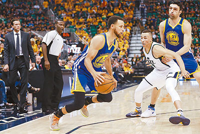 The Warriors laid the foundation for the win with a devastating first quarter performance, which saw them pour on 39 points to open up a double-digit lead against a shellshocked Utah. “Guys really came out focused,” said Warriors forward Draymond Green, who had a triple-double. “We knew what the game plan was and executed that game plan. I think the most important thing, though, is we imposed our will on the game. We had the game at our pace.” The Jazz battled back to reduce the deficit to eight points at half-time at 60-52. Utah remained in touching distance throughout the third period but the Warriors always looked capable of finding an extra gear when it mattered. The decisive period came at the end of the third period when both Curry and Andre Iguodala both hit three-pointers in quick succession to help the Dubs pull away to 93-79 heading into the fourth quarter. That burst of scoring was a foretaste of what was to follow in the fourth quarter, with the Warriors pulling further clear to wrap up victory by a 26-point margin. Curry was one of five Warriors players to hit double figures, with Klay Thompson adding 21 points and Kevin Durant 18. Green added 17 points, 10 rebounds and 11 assists for a triple-double. For Utah, Gordon Hayward top scored with 25 points while Shelvin Mack had 18 and Dante Exum 15. Curry meanwhile played down the suggestion that the Warriors may suffer deeper into the playoffs after romping through the first two rounds without dropping a game. “Every team that we’ve played had a lot of pride,” Curry said. “We haven’t lost but within these games we’ve really had to check ourselves. “You can learn lessons through winning and that’s what we’ve done.” Jazz star Hayward, who may have played his last game for the team as he prepares for free agency, said Utah had been defeated by a “historically great team.” “They make you pay for your mistakes,” Hayward told reporters. “You have to be almost perfect every possession, or else they turn it into a 9-0 run or 10-0 run. “You can’t have one mental lapse against them. This was a great learning experience for us. They showed why they are who they are, and we’re not quite there yet. But you have to take positives from it.” (SD-Agencies) |