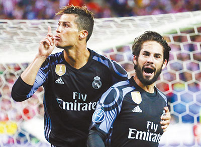 Vicente Calderon Stadium to move within a goal of sending the semifinal, second-leg into extra time. But Isco netted a crucial away goal for Madrid before halftime to secure a 4-2 victory on aggregate and a spot in the final against Juventus on June 3 in Cardiff. “We knew we were going to suffer, but we are extremely happy to have made it to the final,” Madrid coach Zinedine Zidane said. “It’s been a very long road and it hasn’t been easy. And to do it for the second year in a row, we need to congratulate everyone in this club.” Atletico ends its Champions League campaign without a shot at the title and with its fourth straight elimination to its powerful Spanish rival. Madrid defeated Atletico in the final last year and in 2014, and also eliminated the crosstown opponent in the quarterfinals in 2015. “I’m happy and proud to have shown what we are all about,” Atletico coach Diego Simeone said. “When we said we believed in a comeback, a lot of people didn’t take it seriously. The first 30, 35 minutes we played will remain in the fans’ memory for a long time. But we were playing against a great rival and they took advantage of our mistake in defense.” Madrid will try to become the first team to win back-to-back titles since the competition’s new format was created in 1992. It will be the first team to have a chance to defend its title since Manchester United made it to consecutive finals in 2008-09. Atletico kept its hopes alive Wednesday by scoring two early goals to ignite the crowd at the packed Calderon. Saul Niguez netted the first goal with a header off a corner in the 12th minute, and Antoine Griezmann added to the lead four minutes later by converting a penalty after Fernando Torres was tripped by defender Raphael Varane. Griezmann, who had missed a penalty in last year’s final against Madrid, slipped slightly just as he was taking the shot. Madrid goalkeeper Keylor Navas got his glove to the ball, but couldn’t keep it out. “They started strongly but eventually we were able to find our game,” Zidane said. “In the second half, we were much better.” The early goals gave Atletico real hope of causing an upset, but Simeone’s team was unable to keep pressuring as it did in the opening minutes. The match was evenly-balanced when Karim Benzema came up with a spectacular move to set up Isco’s goal. The French striker was surrounded by three Atletico defenders at the byline, but somehow found a way past all of them with a pair of quick touches. He sped into the area and sent a backward pass to Toni Kroos, whose shot was parried by goalkeeper Jan Oblak. But Isco pounced on the rebound to score from close range. (SD-Agencies) |