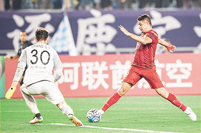BRAZILIAN striker Elkeson scored once and forced an own goal as Shanghai SIPG downed Chinese rival Jiangsu Suning 3-2 to reach the AFC Champions League quarterfinals in Nanjing on Wednesday night. Elkeson profited from some kamikaze first-half defending from Hong Jeong-ho, who gifted him the opening goal, and Yang Xiaotian, who diverted a shot into his own net. Hong and Wu Xi scored late headers to stir faint hopes for Jiangsu, before Brazil’s Hulk rolled in his fifth goal of the campaign to leave the scores at 5-3 on aggregate. Andre Villas-Boas’s SIPG, which won last week’s first leg 2-1, is into the last eight for the second straight year after dominating a tie between two of the most expensive teams ever seen in Asia. “I am very happy for the team and the victory that we deserved,” Villas-Boas said. “The players showed high spirit despite the humid weather, and have been training very hard amid a tiring schedule.” SIPG will meet one of the three teams — Guangzhou Evergrande, Kawasaki Frontale and Urawa Red Diamonds — in the quarterfinals. The draw will take place June 6. Elsewhere Ryota Moriwaki scored in extra time as Urawa Red Diamonds pulled off a stunning comeback by beating 10-man Jeju United 3-0 to book their quarterfinal spot. Jiangsu’s Alex Teixeira was everywhere early on and in the sixth minute, a rebound from the Brazilian’s corner fell to Wu who volleyed straight at the goalkeeper. Another Teixeira corner found central defender Hong, who first saw his header saved on the line and then hit the post as the ball came back to him. The unlucky moment was perhaps a bad omen for the South Korean, who was at fault for the opening goal when he failed to deal with a through-ball to Elkeson on 34 minutes. As Hong checked his run, expecting goalkeeper Zhang Sipeng to gather, Elkeson rushed in and prodded home his finish, making it 1-0 on the night and 3-1 on aggregate. Nine minutes later and Jiangsu suffered another howler when Elkeson’s shot was blocked by the backpedal ling Yang, who cannoned it straight into the net. It was almost a lost cause for Jiangsu but they attacked relentlessly in the second half with Ramires and Teixeira, who beat three defenders before firing over, both coming close. Substitute Ge Wei hit the post with a header and had another saved on the line before Hong redeemed himself by scoring with his head on 75 minutes. Wu’s looping header in the third added minute made it 3-4 on aggregate but just a minute later, Hulk’s strong run and finish put the result beyond doubt. (SD-Agencies) |
