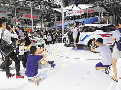 Residents take photos at the 21st Shenzhen-Hong Kong-Macao International Car Show at the Shenzhen Convention and Exhibition Center yesterday. The car show features the latest car models, including new concept cars, super sports cars and driverless vehicles, from a number of domestic and overseas carmakers. The show will continue through Sunday. Sun Yuchen |