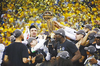 SPARKED by 39 points from Kevin Durant and 34 from Stephen Curry, the Golden State Warriors won their fifth NBA title Monday, beating Cleveland 129-120 to capture the NBA Finals for the second time in three seasons. Golden State took the best-of-seven series 4-1, reclaiming the throne they lost to the Cavaliers a year ago. The Warriors completed a 16-1 playoff run, the best post-season win percentage in NBA history. It was the first career NBA title for Durant, who left Oklahoma City last July to join the Warriors amid expectations he and Golden State would fill trophy cases. “I couldn’t sleep for two days,” Durant admitted. “I was anxious. I was jittery. I just wanted to put it all out there. “We battled. But we did it. We’re champions. And we’re celebrating on our home court.” Durant, who was named the NBA Finals Most Valuable Player, became the first player with five consecutive 30-point performances in the NBA Finals since Shaquille O’Neal in 2000. The Warriors also won titles in 1947 and 1956, when the team was based in Philadelphia, and took the crown in 1975 and 2015 after moving to the San Francisco Bay area, but had never clinched a title at home. “These guys are so gifted and committed to each other and so unselfish,” Warriors coach Steve Kerr said. “It’s a combination of talent and an unselfish nature.” LeBron James scored 41 points to lead the Cavaliers. He also had 13 rebounds and eight assists, giving him a triple-double average for the finals, an unprecedented feat. But James, in his seventh consecutive playoff series and eighth overall, fell to 3-5 in the championship round. Kyrie Irving added 26 points and J.R. Smith 25 in a losing cause. “LeBron and Kyrie, I’ve never seen nothing like them,” Durant said. “LeBron was the only person I’ve looked at that could look me eye to eye.” After dropping last year’s title to Cleveland making the greatest comeback in NBA Finals history from a 3-1 deficit, the Warriors vowed not to stumble again. “We’ve learned from everything we’ve been through to bring (the trophy) back home,” Curry said. “I’m just proud to be part of something special and I just want to do it again.” Excitement was high for the contest. Two courtside seats reportedly went for US$133,000 on the resale market while other confirmed resale prices for pairs of seats were at US$82,000 and US$90,000. James hit a layup to open the fourth quarter and pull Cleveland within 98-95, as close as the Cavs had been in the second half after trailing by 17 in the second quarter. Golden State responded with a 10-3 run, Durant scoring five as the Warriors stretched their margin back to 108-98. Kyle Korver’s 3-pointer pulled the Cavaliers within 108-102 but dunks by Durant and Andre Iguodala boosted Golden State’s lead to 110-102 and the Warriors kept Cleveland at bay, a Durant driving layup stretching Golden State’s edge to 118-106 with five minutes remaining. (SD-Agencies) |