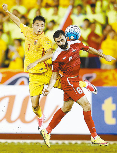 AHMAD AL-SALIH’S injury-time free kick dealt China’s already faint World Cup hopes another body blow as it was held 2-2 by Syria in the neutral venue of Malacca City in Malaysia on Tuesday night. China had fought back from Syria’s first-half penalty to lead 2-1 before the bearded al-Salih skilfully converted from the edge of the ‘D’ in the third minute of added time. Marcello Lippi’s China now faces the unlikely prospect of making up six points and four goals in goal-difference to snatch third place and a playoff spot in Group A. Victory over war-torn Syria would have lifted China’s chances after third-placed Uzbekistan went down 0-2 to Iran. Only the top two teams earn an automatic spot at next year’s World Cup. Mahmoud al-Mawas put Syria ahead in the 12th minute from the penalty spot — even after he was forced to take his kick twice for an infraction. China threatened but the clock was ticking down when Zhang Linpeng took a tumble in the box for what looked like a soft penalty, which was converted by Gao Lin in the 68th minute. Wu Xi earned China a 2-1 lead when he found space to swing his right boot and bury a volley in the 74th, putting his team on course for only its second win in the group. But Salih, who had complained bitterly about China’s penalty, stepped up in injury time to place his free kick past the despairing dive of goalkeeper Zeng Cheng. Syria remains fourth in the group, ahead of China, which plays Uzbekistan and rock-bottom Qatar in its last two games. Earlier, Japan stumbled in its bid to qualify for the World Cup after being held 1-1 by Iraq. Yuya Osaka scored a header early in the match in Tehran, where Iraq plays its home games for security reasons. But Mahdi Kamel equalized in the second half for Iraq, which has already been eliminated from qualifying. Japan leads Group B by one point ahead of Saudi Arabia and Australia with two games remaining. Japan will host Australia in August and then play in Saudi Arabia in September. Also, Ali Mabkhout scored an injury-time goal to give the United Arab Emirates a 1-1 draw in Thailand. Thailand, which is in last place in the group, got its goal from Mongkol Kraisorn. On Monday, Sardar Azmoun and Mehdi Taremi were on target as Iran confirmed its spot in the 2018 World Cup finals with a 2-0 victory over Uzbekistan at the Azadi Stadium in Tehran. It was Iran’s sixth win from eight matches in Group A, which took the table-topper to 20 points, while South Korea is second on 13 ahead of its match against Qatar. Carlos Queiroz-coached Iran is still unbeaten in the third stage of qualifying and amazingly has not conceded a single goal during the campaign, thus underlining its credentials as one of Asia’s soccer giants. Iran joins host Russia and five-time champion Brazil in securing a place for the tournament, which runs from June 14 to July 15, 2018. (SD-Agencies) |