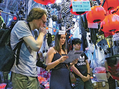 Expats buy Halloween decorations at a wholesale market in Luohu District on Thursday. The Sungang Toys and Stationary Wholesale Market is well known among wholesalers in Shenzhen and other mainland cities. Thanks to its variety and reasonable prices, an increasing number of buyers from Hong Kong have also been coming to buy at the wholesale market in recent years. Sun Yuchen |