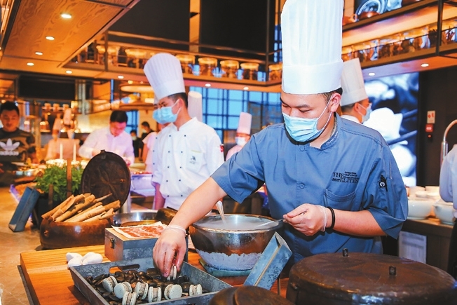 ELEVEN chefs from eleven hotels of the Marriott International chain across Shenzhen gathered at the Shenzhen Marriott Hotel Nanshan on June 11 and presented diners a food tasting event with the theme “Summertime Feast,” kicking off a two-month dining carnival across the city. Led by Wang Junjie, director of culinary arts and Cao Jinming, director of Chinese cuisine of the Marriott International in China, the carnival will be presented at seven locations of seven brands to provide foodies with a delightful culinary experience. The participating hotel brands are JW Marriott, Marriott, Westin Hotel, Sheraton Hotel, Renaissance Hotel, Four Points Sheraton Hotel and the Courtyard Hotel, with each hotel providing the best of their signature dishes. During the two-month event, the buffets at the eleven hotels will replicate the menu designed by these chefs to bring local foodies and guests a delightful culinary experience. The promotion, with a starting price of 418 yuan (US$59.7) for two adults and one child, will be available as a limited offer and for a limited time on Fliggy’s streaming platform. Some of the featured dishes are mouth-watering just from the descriptions! JW Marriott Hotel in central Bao’an presented Chinese cabbage and authentic Cantonese barbecued pork; JW Marriott Shenzhen in Futian brought light-flavored, sweet coconut chicken soup; executive chef from Shenzhen Marriott Hotel Nanshan used a special cooking technique of moderate temperature to make the slow-braised veal steak; Shenzhen Marriott Hotel Golden Bay in Dapeng New District chose a local specialty — Kiln chicken, which is crispy outside and tender inside; executive chef from The Westin Shenzhen Nanshan brought special spring rolls featuring caviar and fruits; Sheraton Shenzhen Futian Hotel selected imported bird’s nest cup and organic eggs and creatively turned them into a healthy dessert — bird’s nest egg tarts; Sheraton Shenzhen Nanshan used imported chocolate and butter to make fondant au chocolat; and Malaysian chef from Renaissance Shenzhen Luohu Hotel brought traditional Malaysian Harmee featuring shrimp shell soup and fresh pork ribs as well as exotic curry lamb. Four Points Sheraton Shenzhen used Cantonese food materials to make a classic Italian staple — Garlic spaghetti with crab meat; Courtyard Marriott Shenzhen Bao’an was inspired by liquor preserved crabs and modified with Cantonese style to present iced crawfish in yellow rice wine and rice in lobster soup; and Courtyard Shenzhen Bay presented deep sea speckled hind fish in rice milk. Running through Dec. 31, 2020, guests can make their reservations on WeChat’s mini program Marriott International, and Marriott Bonvoy members can enjoy a discount of 30 percent.(Yang Mei) |