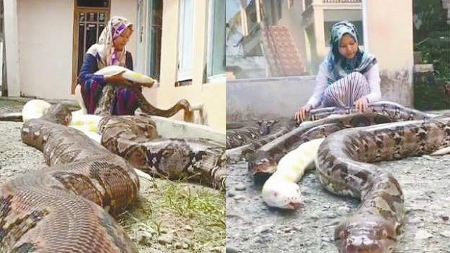 A 14-YEAR-OLD Indonesian girl has been getting a lot of attention on social media thanks to her unusual pets — six giant pythons that she loves to pet and cuddle in her videos. Most people would run for their life at the sight of a full-grown python, especially one that looks like it could swallow an adult human with ease, but Chalwa Ismah Kamal isn’t most people. The girl shares her home with six giant pythons and appears to have no concern for her safety when she’s around them. Not much is known about Chalwa and how she came to live with the six pythons, but she allegedly told the Indonesian website Lampung77 that she has been taking care of her pet snakes since she was only 4 and feels no fear whatsoever when she is around them. Although people regularly express their concerns for Chalwa’s safety in the thousands of comments she gets on her videos, the girl does her best to explain that her pets are not poisonous, that they are tame and that snakes in general are victims of negative stereotypes. It’s not just Chalwa who feels completely comfortable surrounded by massive pythons. Her younger brother appears in some of the viral videos as well and he looks just as carefree.(SD-Agencies) |