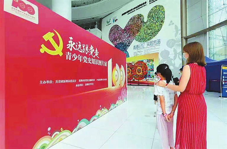 To teach the young about the history of the Communist Party of China (CPC) and to cultivate in them a love for their motherland, Shenzhen Children’s Palace is holding an exhibition at its main hall through July 18. Historical pictures with detailed captions help visitors to understand 100 significant events in the history of CPC. Youngsters are encouraged to visit the exhibition launched on Thursday to mark the centennial of CPC. (Debra Li) |