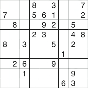 Game rules: Every column, row and box (3×3 marked by heavier lines) must contain all the digits from 1 to 9.
